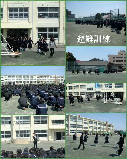 3限には、避難訓練を行いました。今日は地震発生を想定して行いましたが、新しい教室からの正しい避難経路を知ることも大きな目的の一つでした。全校842名の避難完了に、6分6秒かかりました。係の先生から、緊急時の初期避難は5分以内が安全が保てる時間と聞き、気を引き締めました。