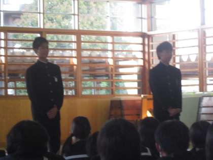 「1年後の自分の姿をイメージして、目標を達成するための努力をしていこう。」など、大きな期待を込めてのお話でした。