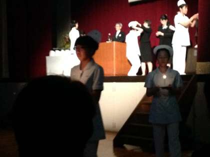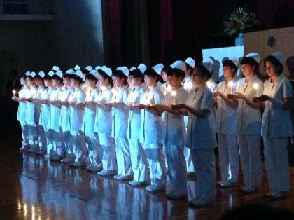 今伊勢中学校の卒業生で、将来看護師となることを目指し、愛知県立桃陵高校衛生看護科に進学している生徒が数名います。そのうちの一人が高校3年生となり、本格的な病院実習を控え、戴帽式を迎えました。看護師のシンボルとされるナースキャップを生徒一人一人の頭に戴く、看護師を目指す生徒にとって節目の式典です。今伊勢中学校にも式典への招待状が届き、当時の担任の先生が出席しました。
