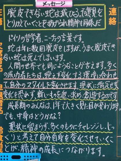校内を歩くと、いつも気になるのが、教室の背面黒板。