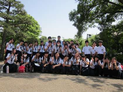 2コースの午後の活動は、三十三間堂の見学と、甘春堂での和菓子作り体験です。三十三間堂では、1000体の仏像に驚きながらも、「あの顔が私の親に似ているかな〜」と言いながら見学をしました。午前中のインタビュー活動が楽しく、ここでも外国人観光客に話しかける姿もありました。