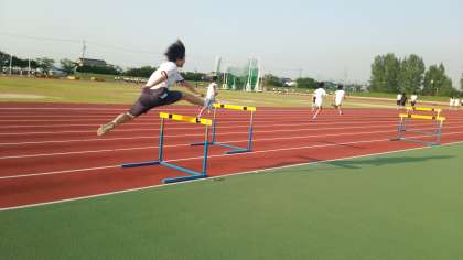 先週から、陸上部は県営グランドへ出かけて練習しています。今日は、ハードルとリレーの選手が練習してきました。本番の競技場で、ハードルを跳ぶときのフォームを動画でチェックしたり、バトン渡しを何度も何度も確認したり、真剣な表情で取り組んでいました。他の競技の選手も、学校で部活動後、練習していました。6月7日の本番まであと少し!がんばっています!!