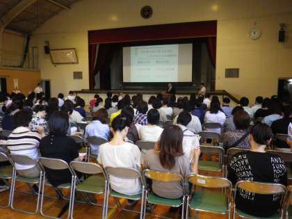 猛暑となった屋内運動場でしたが、ご参加してくださった保護者の方も真剣に耳を傾け、進路のしくみや我が子との進路決定への道筋をイメージしていただけました。