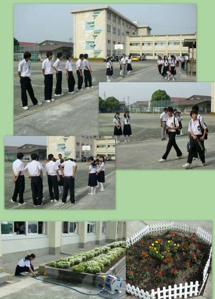 6月2日 委員会活動 公開日 2014/06/02 更新日 2014/06/02 お知らせ 始業前から委員会活動は行われています。校内に何ヶ所もある花壇には、緑化委員会の係の皆さんが水撒きを行います。また、昇降口前では、生活委員会の皆さんによるあいさつ運動も行われています。自主的な活動をどんどん進め、学校を活気あふれるものにしていきましょう。