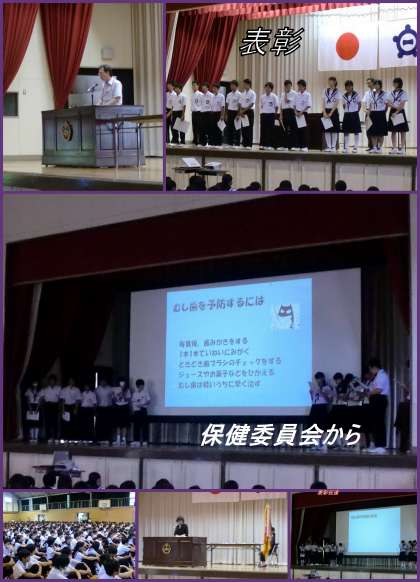 生徒集会としては、2年生保健委員の皆さんから「むし歯予防」についての話がありました。