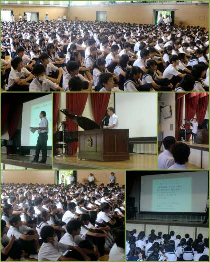 朝から気温が上がる中、屋内運動場に集まり1学期の反省と夏休みの過ごし方についてのお話を聞きました。
