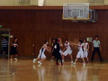 女子バスケットボール部は、9:00から奥中学校とベスト4をかけて、戦ってい、接戦が続いています。