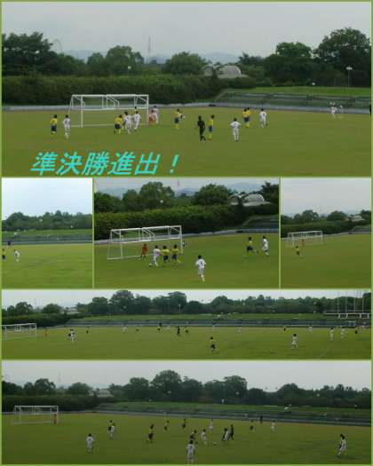 試合開始8分で、先制点を入れました。その後もボールもゲームを支配し続けると言う、ベストに近い試合だったと思います。後半は、一時雷雨で中断をはさみましたが、集中力を切らすことなく今中サッカーを続け、6−0で勝利しました。準決勝は明日、9時30分から光明寺サブグランドで行われます。応援よろしくお願いします。