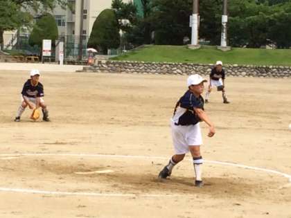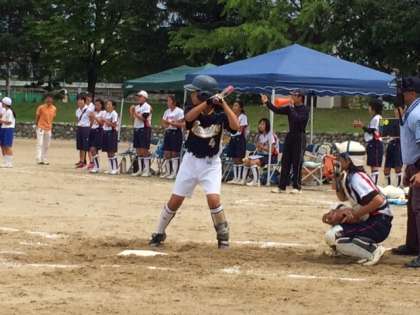 昨日から延期になったソフトボールの決勝(vs浅井中)が、9時30分から九品地公園競技場で行われました。