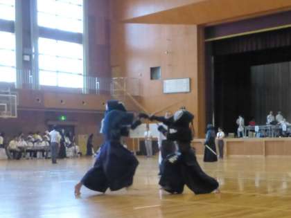 女子団体は、前年度優勝の弥冨中学校には惜敗したものの、大里東中学校戦、犬山南部中学校戦と快勝し、2位でリーグを抜けることができました。どの試合も気持ちの入った良い剣道ができていました。