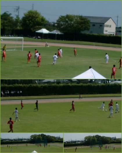 速報でもお伝えしましたが、延長前半に1点を入れ、そのまま逃げ切り明日の準決勝へとコマを進めました。気温38度。しかし、炎天下のピッチでは40度を越えていたことと思います。両チームともによく走りぬきました。そして、よく攻め、守りました。スタンドの応援席では、両チームの応援が入り混じっていましたが、お互いのナイスプレーをたたえる拍手や歓声が何度も起きました。とても気持ちの良い試合でした。明日も、気持ちの良い試合が行われることでしょう。楽しみです。