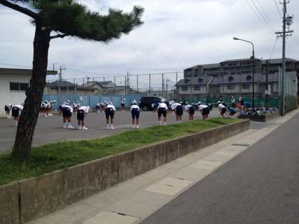 午後からはサッカー部とソフト部がグラウンドで練習しています。本日も気温が高いため適度に休憩を取り、自分の体調を管理しながら練習に励んでいました。男子テニス部も全員で外周をランニングするなど、とても意欲的に取り組んでいました。