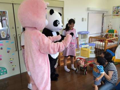 8月5日 ボランティア体験 公開日 2014/08/05 更新日 2014/08/05 お知らせ 今日は一宮市内にある「おもちゃ図書館」というところに4名の生徒がボランティアに出かけています。おもちゃ貸出しの受付を行ったり着ぐるみを着たりと、小さな子どもたちや保護者の方々と笑顔で交流することができました。体験は14時過ぎまでの予定です。