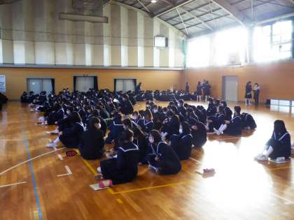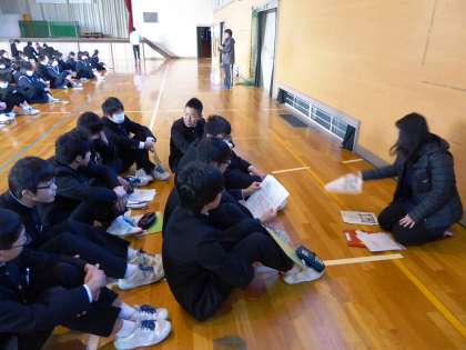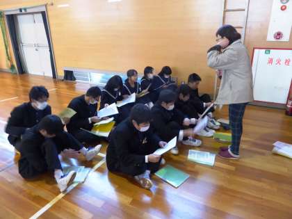 私立推薦受験生が出発後、私立一般受験を控えている3年生が屋内運動場に入り、受験当日の打ち合わせをしました。