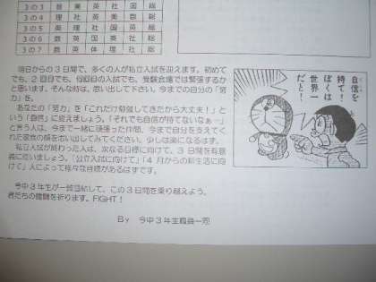 明日から3日間,愛知県私立高校一般入試が行われます。それを前に3年生で学年集会を開き,留意点などを確認しました。かいつまんで記します。
