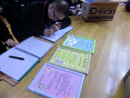 リーダーが中心となり、3年間お世話になった先生方にサプライズの会を企画して,手作りの感謝状を贈りました。今までたくさんの心配をかけ,たくさんの経験をさせてくださった先生方に,それぞれの思いを伝えることができました。代表の生徒の言葉に感動し,涙を流す生徒もいました。