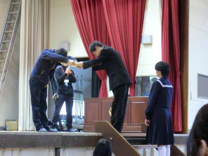 また,今年退職される先生には,特別に合唱のプレゼントをしました。きっと喜んでいただけたことでしょう。ラストの学年集会がとても思い出深いものになりました。