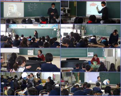 昨日3年生を送り出した先生たちが小学校へ出向いて,出前授業を行いました。今伊勢小学校では,社会,数学,音楽,英語の授業を実施しました。
