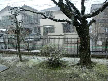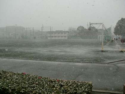 天気予報どおりに雪が降ってきました。啓蟄が過ぎ、野山に飛び出した虫たちも驚いていることでしょう。運動場の部活動は中止となりました。
