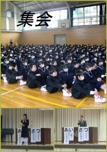 その後生徒会の皆さんから、今週の木金に行われるあいさつ運動について話がありました。一応係りが決まっていますが、ボランティアの参加を求めていましたから、一人でも多くの生徒の皆さんが参加できると良いと思います。あいさつが飛び交う今中にしましょう。