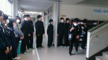 今日、明日と生徒会主催のあいさつ運動が行われています。