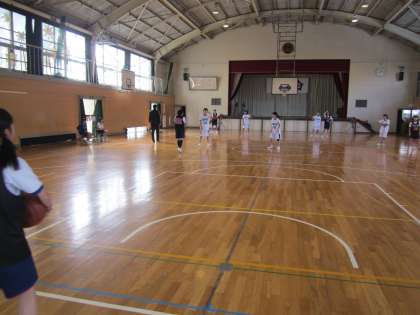 屋運では、女子バスケットボール部が大和中を招いて練習試合を行っており、接戦の試合を展開していました。