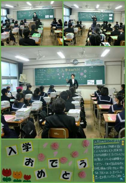 新入生の皆さんは、教室で入学式が始まるのを待っています。とても緊張した面持ちで、担任の先生の話を聞いています。教室のドアを開けても誰も振り返らず、ピシッと前を向いている姿にやる気を感じます。きっと立派な入学式になることでしょう。本日は、おめでとうございます。