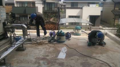 学校では,昨日から印刷室屋上の防水シート張替え工事が行われています。雨が降っていない状況で工事を進めなければならないため,休日を返上して業者の方に工事をしていただいています。知らないところでいろいろなところを手直ししていることを知り,今現在の施設を末永く丁寧に使用していきたいと思います。