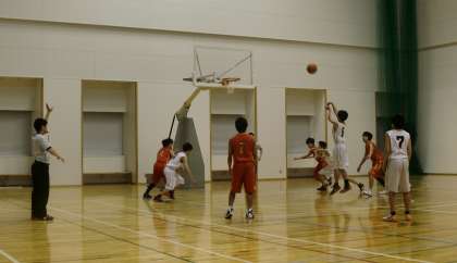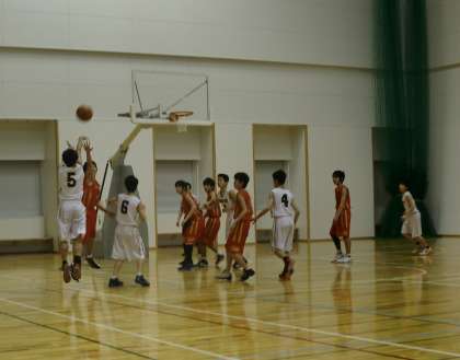 2回戦を行いました。序盤は、相手の高さに圧倒され、単調な外の攻めになってしまいました。逆に、ディフェンスリバウンドを取られてしまいゴール下を決められるいう悪い流れで、1クオーターが終わりました。しかし、2クオーターからはプレスディフェンスからリズムをつかみ、速攻やカットインがよく決まりました。そうすると、外角のシュートも決まりだし3ポイントも連続して入り始めました。結局この流れのまま試合は終了し、見事勝利を収めました。準決勝は来週になります。応援よろしくお願いします。