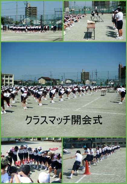 群団ごとに集まり、大きな掛け声とともにクラスマッチが始まりました。クラスのまとまりが試されるときです。開始前に円陣を組み意思統一をしてから、試合に臨みます。勝っても負けても、運動場には大きな歓声が飛び交っています。