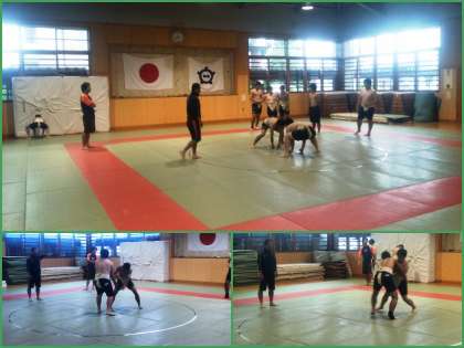 5月4日 相撲練習 公開日 2015/05/04 更新日 2015/05/04 お知らせ 今日は,久しぶりの雨で,昨日までよりも幾分涼しい日となっています。朝から相撲と陸上の練習を行いました。とくに相撲大会まではあと2週間です。立ち合いをしきる指導者の声が,武道場内に響き渡っていました。