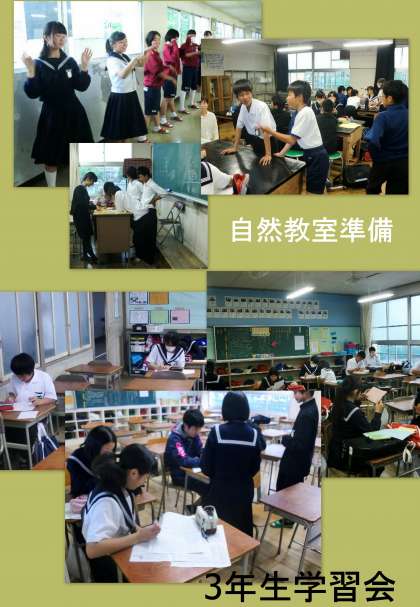 3年生はテスト週間です。教室に残って質問学習会を行っています。理科の勉強を頑張っているグループがあり、質問をしてくれました。学習を進め、疑問を持ち、それを解決していくことで力は伸びていきます。