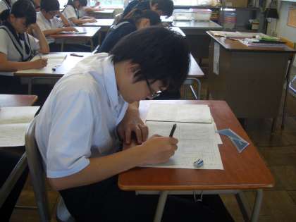 3年生 中間テスト1日目 公開日 2015/05/14 更新日 2015/05/14 お知らせ 3年生になって初めての定期テストが始まりました。どの教科も最後の1秒まで真剣に取り組んでいる姿には、さすが3年生だと感心します。この1年間のテストは、進路を左右するとても大事なものです。1分1秒でも時間を無駄にすることなく、今の自分が持っている精一杯の力を出し尽くしてほしいと思います。あと残り1日、悔いの残らないよう全力で立ち向かってくれるものと期待しています。