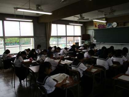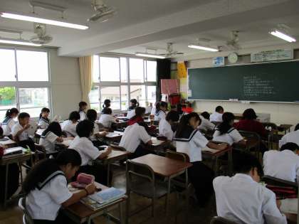 今週の21日から中間テストが始まります。朝読書の時間はテスト期間中、各教科の学習をする時間となります。今日は英語のプリントが配られ、生徒たちは一生懸命問題に取り組んでいました。勉強の成果がテストで発揮できるよう、テスト勉強を頑張ってほしいと思います。