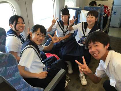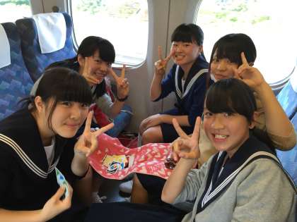 羽島駅から新幹線に乗車し、東京に向かって出発しました。車内では、カードゲームやおしゃべりなどをして、友達と楽しく過ごしています。