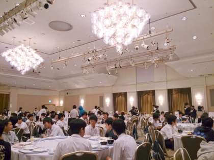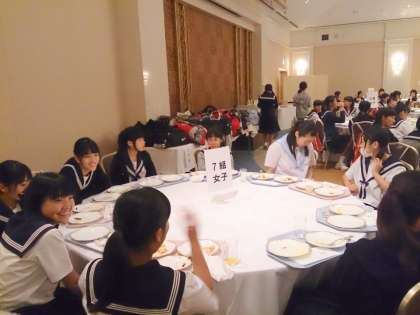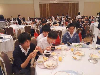 生徒たちは都内コース別研修に期待を膨らませながら、朝食を食べています。