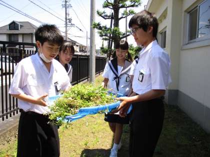 5月21日 草取り 公開日 2015/05/21 更新日 2015/05/21 お知らせ 1・2年中間テストの初日です。1年生にとっては、初めての定期テストでした。3時間のテストの後、給食前の清掃の時間です。雑草の成長と草とりとの競争です。短い清掃時間でしたが、写真は今日の収穫です。