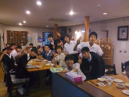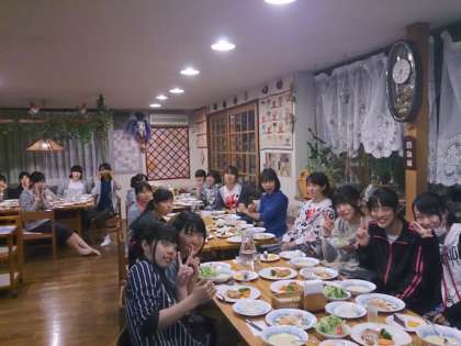 ペンションでの夕食は、みんなで協力して準備をしました。オーナーの方とも仲良くなり、クラスの仲も深まりました。
