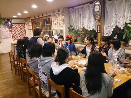 各ペンションでは、オーナーの方とのふれあいタイムを行いました。子どもたちは普段見せない表情に溢れ、ディズニーランドとは違った楽しさを味わっているようです。