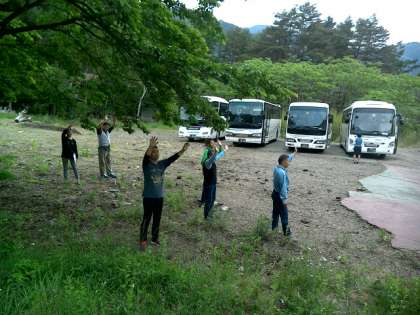 5月22日 修学旅行 富士山に向けて 公開日 2015/05/22 更新日 2015/05/22 お知らせ 退村式を終え,体験コース別のバスに乗り込みました。オーナーさん方に見送られて,富士山に向けて出発です。