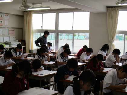 中間テスト2日目です。1年生にとっては初めての定期テストですが、昨日よりリラックスした表情で、テストに集中していました。次は、テスト返却です。間違えたところをしっかりとやり直し、次に備えましょう。