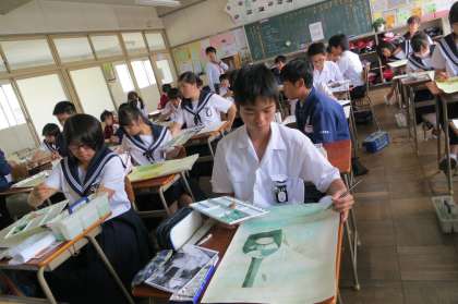 テストが終わり、ほっとした表情の2年生たちです。3限は写生大会が行われました。静かな雰囲気の中、下書きの仕上げをする生徒、色塗りを始めている生徒、それぞれ自分の絵の世界に没頭していました。美術の先生が各教室を回りアドバイスをいただき、より美しい絵を目指して取り組みました。午後からの学年集会では、自然教室についてしおりを見ながら、真剣にメモをとるなど、最終確認ができました。また、実行委員の生徒たちが放課後に残って、キャンプファイヤーを盛り上げるために、リハーサルを行いました。当日をお楽しみに。みんなで楽しい思い出を作りましょう。土日は体を休めて、準備万端、体調万全にしましょう。
