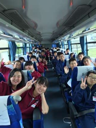 出発式が終わり、今からバスに乗って、旭高原に向かいます。