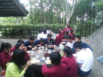 5月25 カレーライス 公開日 2015/05/25 更新日 2015/05/25 お知らせ ほとんどの班が夕食のカレーライスを食べきろうとしています。どの班も自分のところが一番おいしいと確信していただきました。