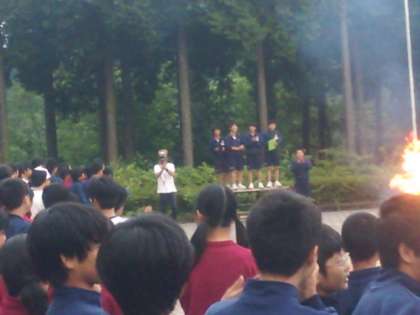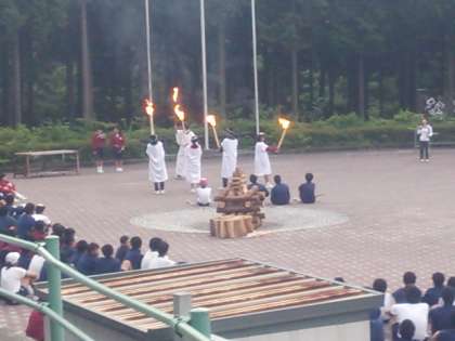 代表の生徒に分火され、ボーンファイヤーが始まりました。猛獣狩りゲームからスタートです。