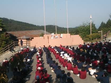 5月26日 自然教室2日目 公開日 2015/05/26 更新日 2015/05/26 お知らせ 自然教室の2日目は、朝の集いから始まりました。国旗掲揚、ラジオ体操、学校紹介を行いました。同宿の小学校の代表児童の話を、真剣に聞くことができました。