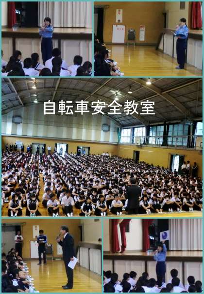 警察署の方々などにご来校いただき自転車安全教室を行うと同時に、自転車盗難防止講話もしていただきました。