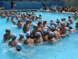 種目は、ボール拾い、人間送り、騎馬戦、選抜リレーを行い、クラス一丸となって一生懸命に応援して絆を深められたようです。リレーの選手に、水泳部顧問も参加し、大盛り上がりでした。また、レクの最後には、フリータイムがあり、学年の先生と一緒にプールに入り、中学校生活の忘れられない思い出の1つになったようでした。