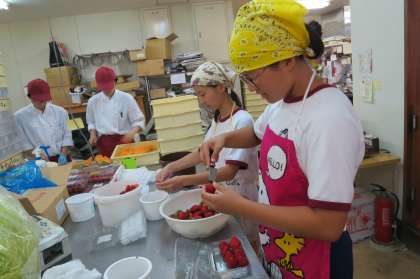 7月29日 2年生職場体験 公開日 2015/07/29 更新日 2015/07/29 お知らせ 本日も2年生は各事業所に職場体験へ出かけています。食品を扱う事業所では、職人さんといっしょに黙々と作業に取り組みました。繊細な和菓子の梱包は慎重に行わないと形が崩れてしまいます。また、ケーキ屋さんでは山盛りのイチゴのヘタ取りを行います。おそば屋さんでは茶碗蒸し作りやそば打ちに挑戦です。真剣なまなざしで作業に取り組んでいます。普段知らない裏での作業を体験し、職業へ対する思いを新たにしました。