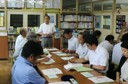 地域部会では、6月に行った教育講演会の反省と、次への課題について。学習部会では、地域の読書量の向上につながる活動。調査広報部会では、地域アンケートや携帯電話アンケートのまとめが報告されました。